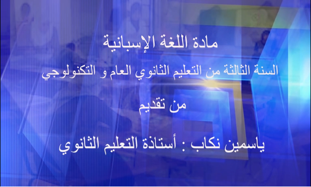 http://webtv.cerist.dz/men/wp-content/uploads/2020/05/اللغة-الإسبانية-3-ل-أ-الحصة-2.m4v مادة اللغة الإسبانية — السنة الثالثة من التعليم الثانوي العام و التكنولوجي من تقديم الأستاذة : ياسمين نكاب– Post navigation اللغة الإسبانية-3 ل أ- الحصة 1 اللغة الإيطالية – 3 ل أ-الحصة 1