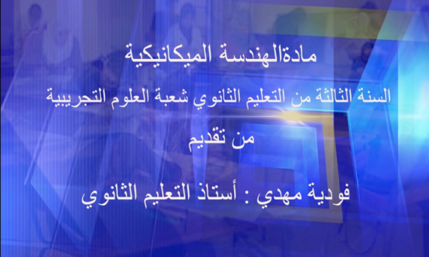 http://webtv.cerist.dz/men/wp-content/uploads/2020/06/هندسة-ميكانيكية-3-تقني-رياضي-الحصة-2.m4v موضوع الحصة 2 تحميل الموضوع مادة الهندسة الميكانيكية — السنة الثالثة من التعليم الثانوي العام و التكنولوجي من تقديم الأستاذ : فودية مهدي — Post navigation هندسة كهربائية – 3 تقني رياضي – الحصة 5 هندسة ميكانيكية – 3 تقني رياضي – الحصة 3