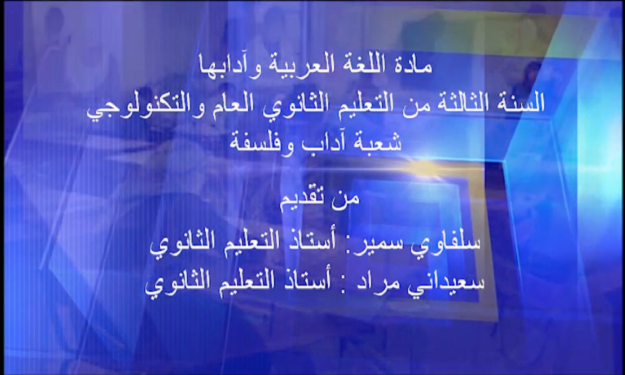 http://webtv.cerist.dz/men/wp-content/uploads/2020/06/اللغة-العربية-وآدابها-3-آ-ف-الحصة-4-1-1.m4v مادة اللغة العربية وآدابها — السنة الثالثة من التعليم الثانوي العام و التكنولوجي من تقديم الأستاذ: سلفاوي سمير و الأستاذ: سعيداني مراد — Post navigation فلسفة-3أ ف- الحصة 5 اللغة العربية وآدابها-3 آ ف – الحصة 5